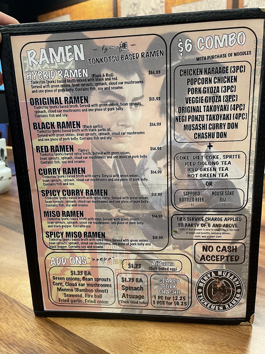 “ This was my second time trying Menya Musashi and it was still a great experience! The food was very filling and delicious. The broths are more creamy and light than other places I tried. Although they don’t give as much toppings as other ramen shops, the broths make up for it! It is a tad expensive, ringing in at around 16 per ramen bowl (although, it seems like that’s the normal price nowadays). In addition, the loaded musashi fries were delicious and such a fun twist on normal fries. The shop is quite small so try and aim for non-peak hours for the best experience! Our server was friendly and helpful. ”